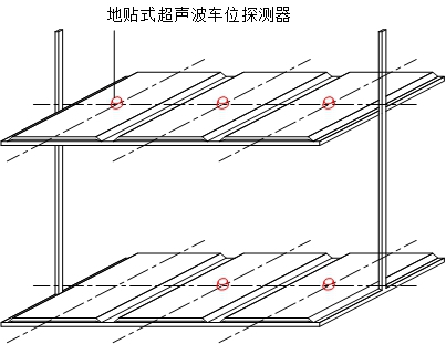 无线超声波车位探测器,安装在每个车位铁板的中间,实时采集车位状态信息,通过无线方式实时上传至本组车库对应的车位指示灯。采用超低功耗设计,电池使用寿命长。